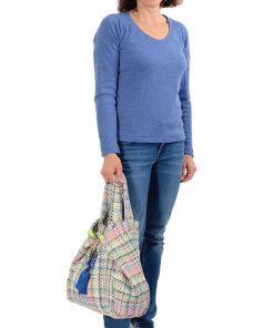 Dieser Shopper bzw. diese Tragetasche ist nicht nur praktisch sondern sieht auch gut aus. Die Handtasche kann mit oder auch ohne Rüsche, mit schräger oder gerader Teilungsnaht genäht werden. Wir haben verschiedene Formen und Verarbeitungsvarianten zur Auswahl. Du kannst diese Tasche sehr kreativ nähen indem Du z.B. mit verschiedenen Stoffen spielst oder den Fadenlauf bei gestreiften Stoffen quer einlegst. Dieses Nähprojekt ist auch für Nähanfängerinnen gut machbar. Die Tasche wird gefüttert, kann aber natürlich auch ohne Futter genäht werden.