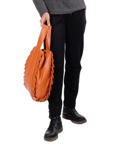 Gr. 1: 38,5 cm x 37 cm (Rüschentasche Leder Terra und Leder Silber mit Rüsche)