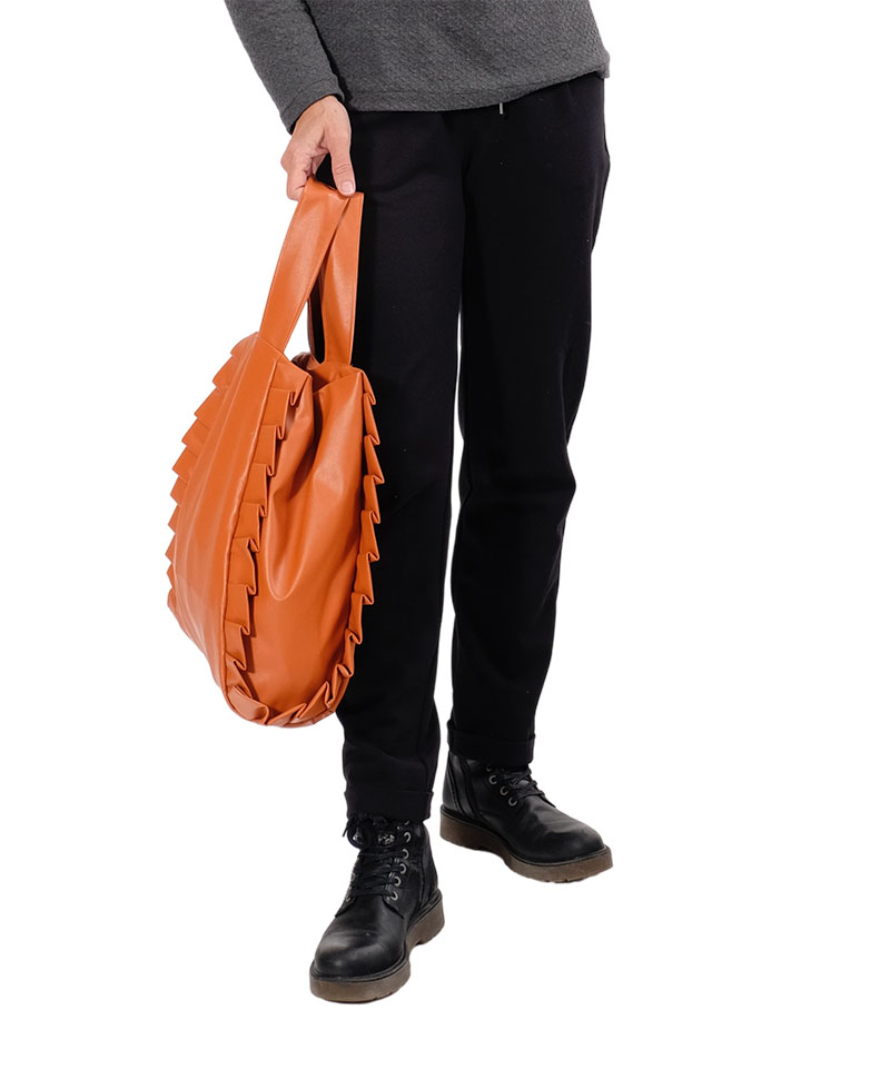 Gr. 1: 38,5 cm x 37 cm (Rüschentasche Leder Terra und Leder Silber mit Rüsche)
