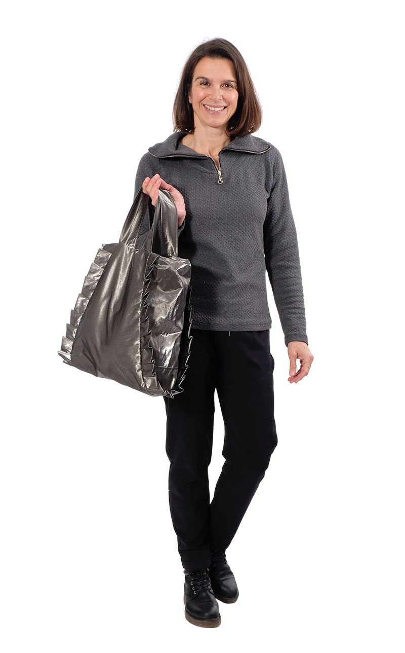 Dieser Shopper bzw. diese Tragetasche ist nicht nur praktisch sondern sieht auch gut aus. Die Handtasche kann mit oder auch ohne Rüsche, mit schräger oder gerader Teilungsnaht genäht werden. Wir haben verschiedene Formen und Verarbeitungsvarianten zur Auswahl. Du kannst diese Tasche sehr kreativ nähen indem Du z.B. mit verschiedenen Stoffen spielst oder den Fadenlauf bei gestreiften Stoffen quer einlegst. Dieses Nähprojekt ist auch für Nähanfängerinnen gut machbar. Die Tasche wird gefüttert, kann aber natürlich auch ohne Futter genäht werden.