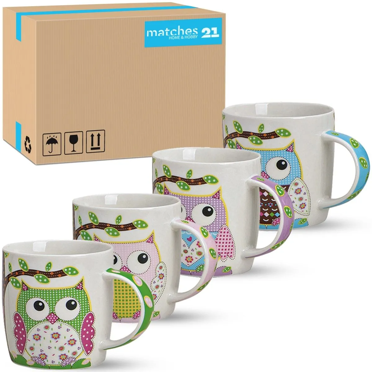 Tassen Becher Kaffeetassen bunte Eulen 36 Stk. Porzellan 9 cm / 300 ml
