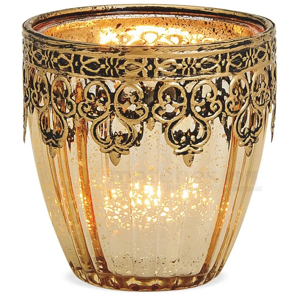 Teelichtglas Windlicht Orientalisch Marokko & Metalldekor gold antik 9 cm