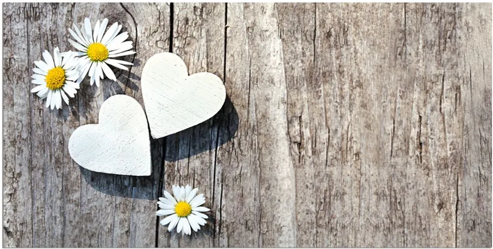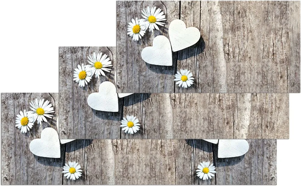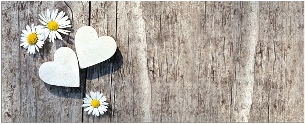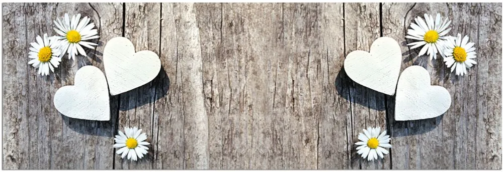 - Küchenläufer mit Motiv: Gänseblümchen mit Herzen auf rustikalem Holzbrett – Läufer Teppichläufer Küchenvorleger
