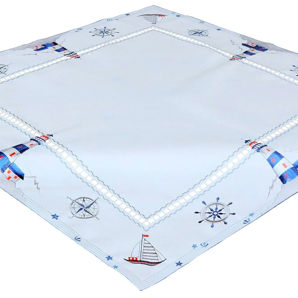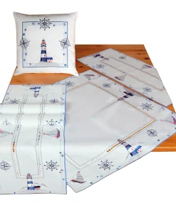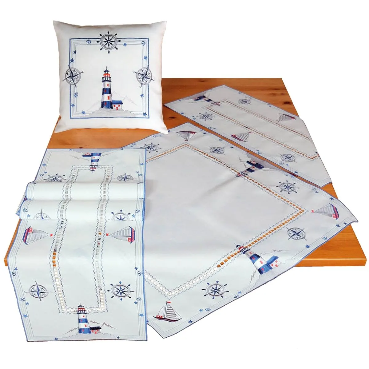 Tischläufer Mitteldecke maritime Motive wollweiß Stick bunt Tischwäsche 40x90cm
