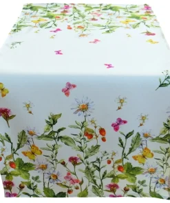 - Tischläufer / Tischdecke / Mitteldecke mit bunter Blumenwiese & Schmetterlinge bedruckt