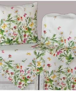 Romantische Tischläufer KIARA mit Blumenmuster – Frühlings- und Sommerfrische für deinen Tisch. Bring mit dieser bezaubernden Mitteldecke einen Hauch von Natur und Leichtigkeit in dein Zuhause. Das detailreiche Blumenmuster, geschmückt mit zarten Blüten, Blättern und verspielten Schmetterlingen, verwandelt deinen Wohn- oder Essbereich in eine einladende Oase. Die harmonische Kombination aus weißem Hintergrund und bunten Blumenmotiven schafft eine fröhliche Atmosphäre, die perfekt zur Frühlings- und Sommerzeit passt. Mit einer Größe von 40 x 90 cm eignet sich dieser Läufer ideal für verschiedene Einsatzmöglichkeiten – vom Esstisch über den Gartentisch bis hin zur dekorativen Auflage auf der Kommode. Das pflegeleichte Material aus 100% Polyester garantiert, dass der Tischläufer auch nach mehrmaligem Waschen ihre Farbe und Form behält. So kannst Du ihn bedenkenlos im Alltag nutzen oder als stilvolles Accessoire für besondere Anlässe einsetzen. Ob für gemütliche Familienessen, sommerliche Gartenpartys oder als frischer Akzent in deinem Wohnraum – diese romantische Mitteldecke bringt Natürlichkeit und Charme in jede Umgebung und lädt zum Verweilen ein.