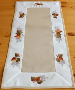 Tischläufer Mitteldecke Stick Blätter Motiv beige-bunt Tischwäsche 40×90 cm