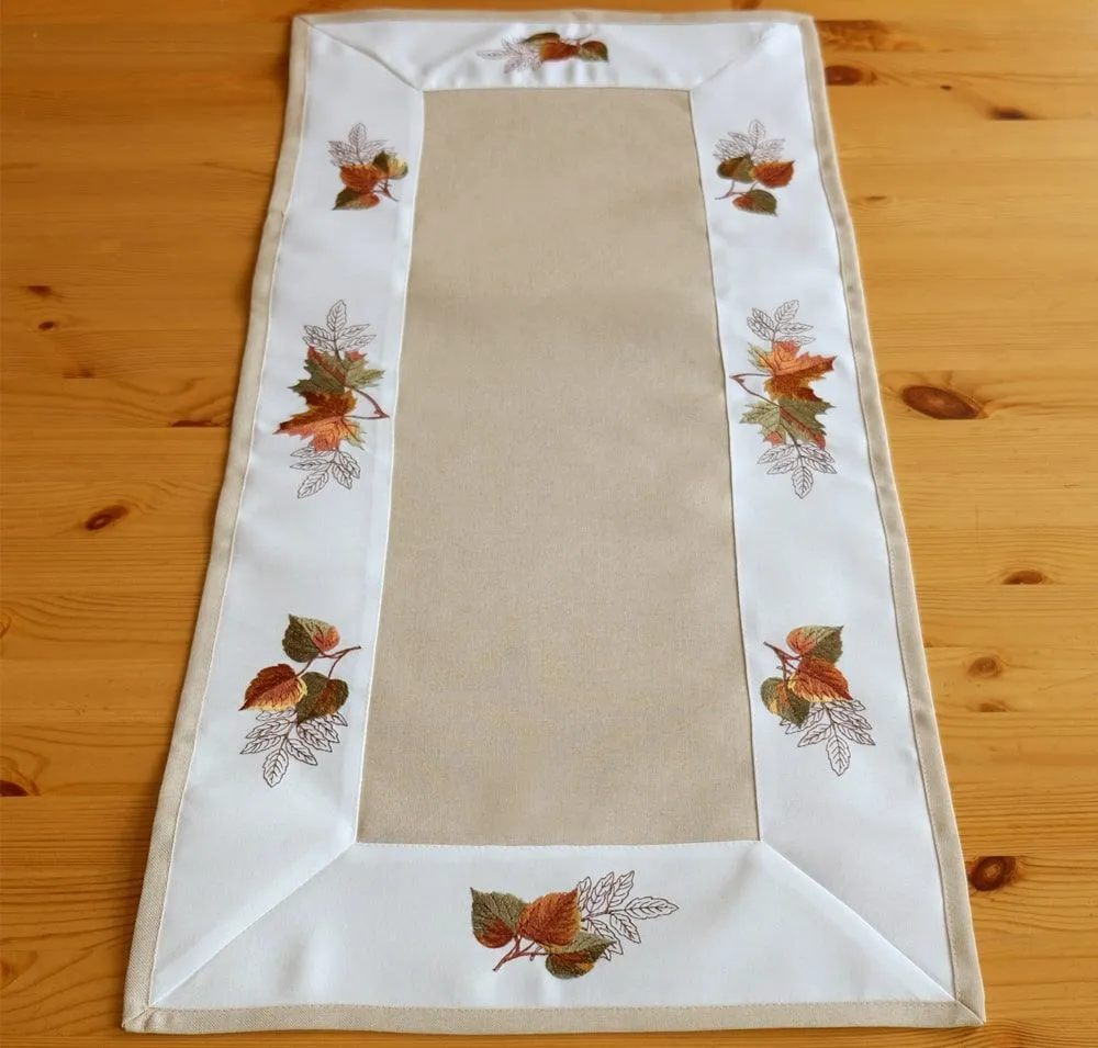 • Mitteldecke / Tischdecke mit hübscher Blätter Stickerei – toll bestickte Tischwäsche in beige-bunt