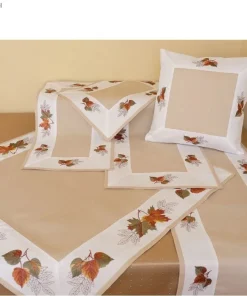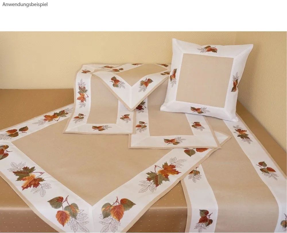 • Hübsche Tischwäsche / Heimtextilien mit Blätter Stickerei in beige-bunt – perfekt für jeden Wohnraum