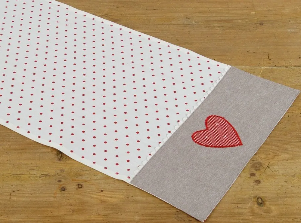 Tischläufer ROSI – Landhausstil mit Herzapplikationen
