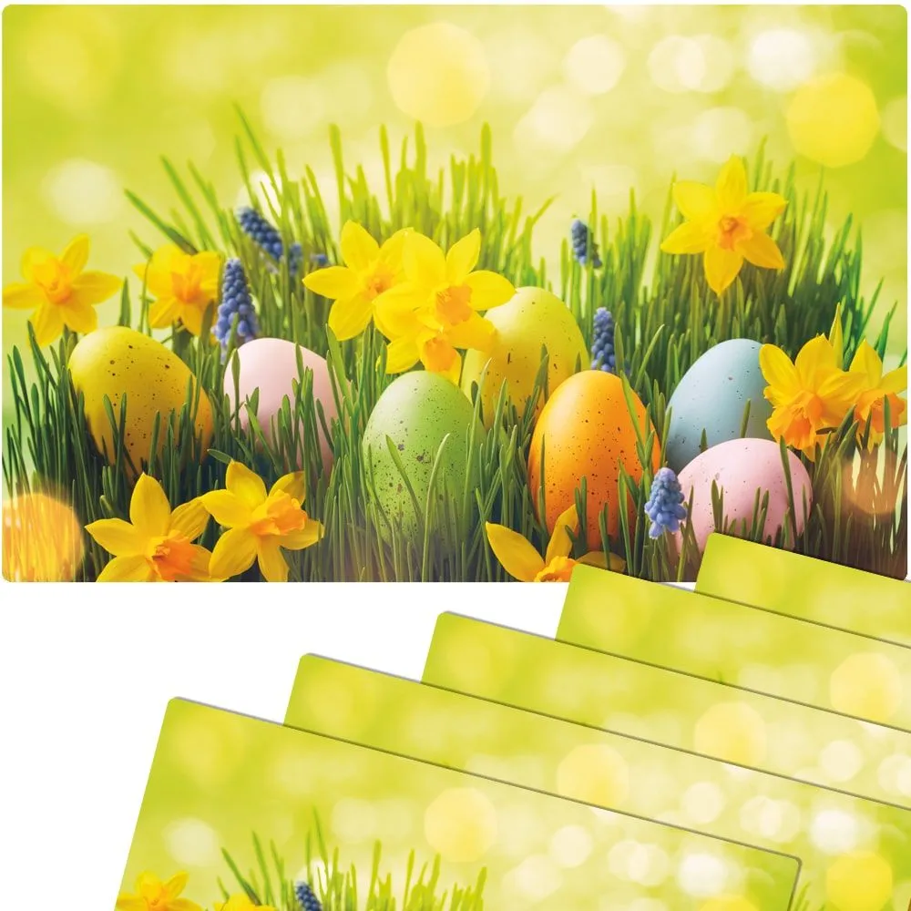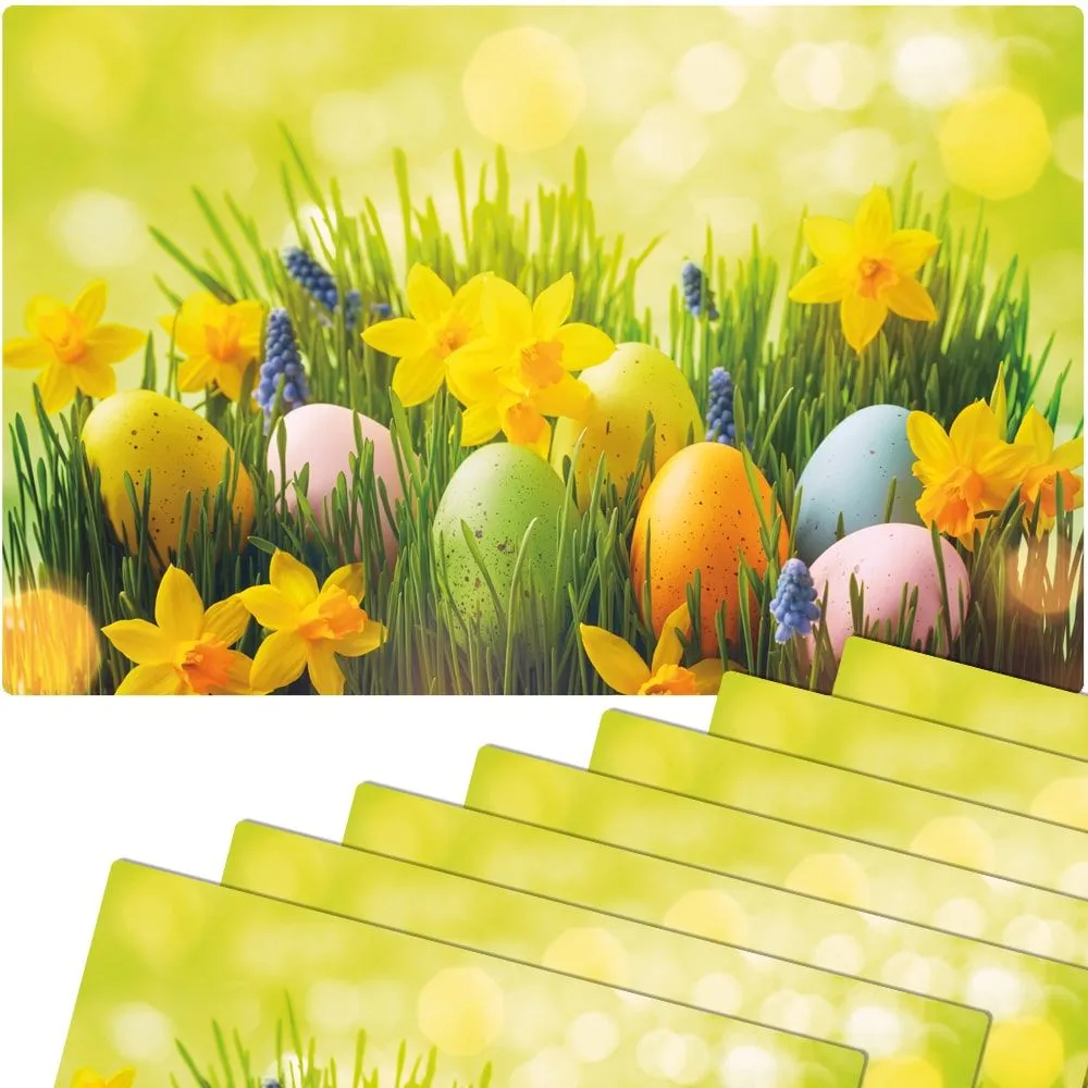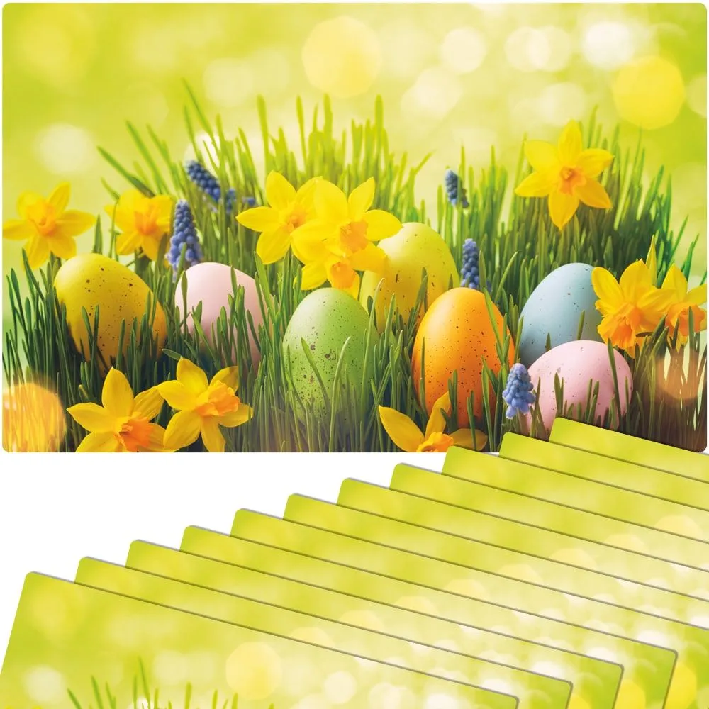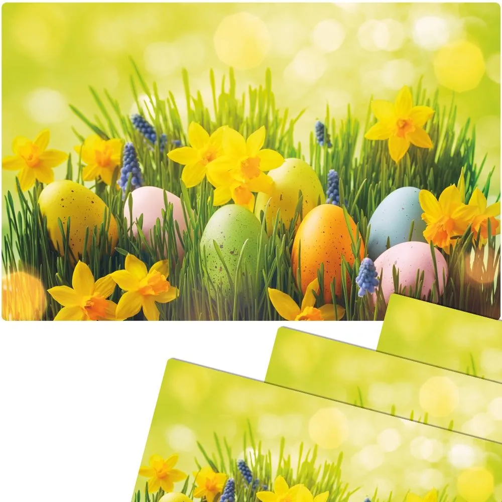 Tischsets Platzsets MOTIV abwaschbar Ostereier Osterglocken Blumenwiese bunt