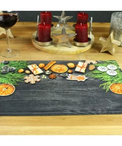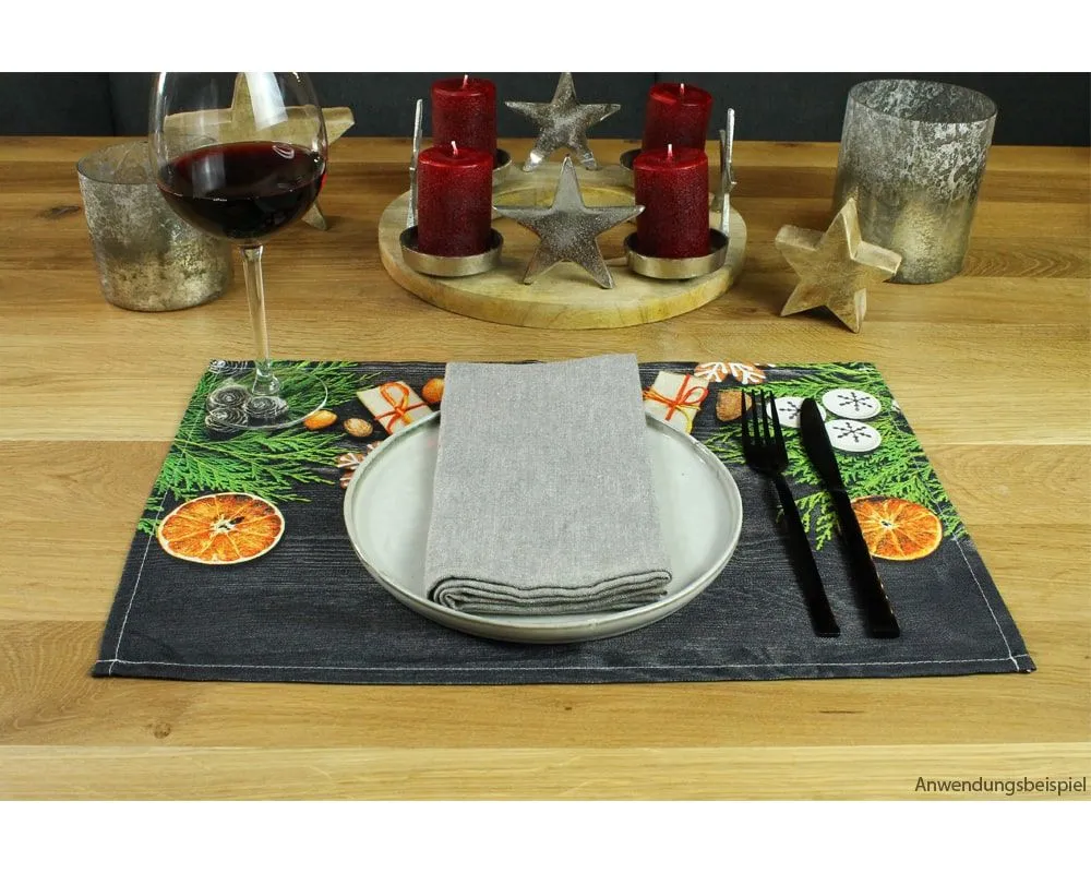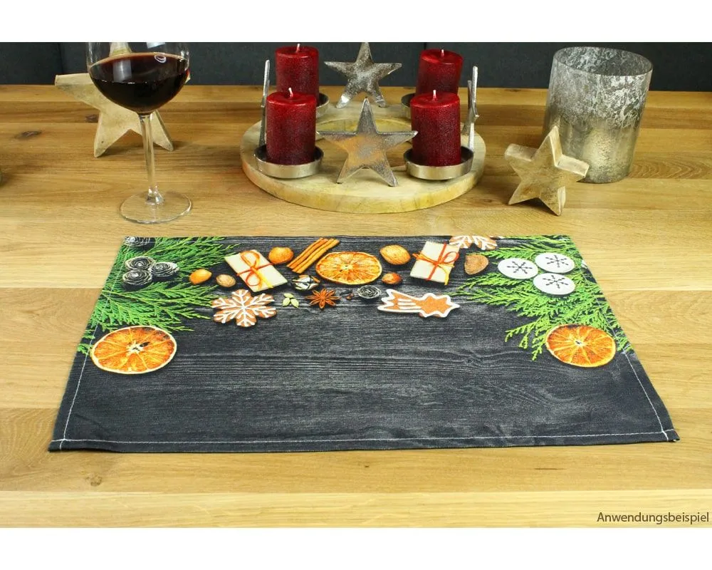 - Größe (LxB): 45×30 cm – Platzset mit Motiv: Weihnachtsdeko & schwarzes Holz – Farbe: Bunt – Erhältlich einzeln, 4er & 6er Set