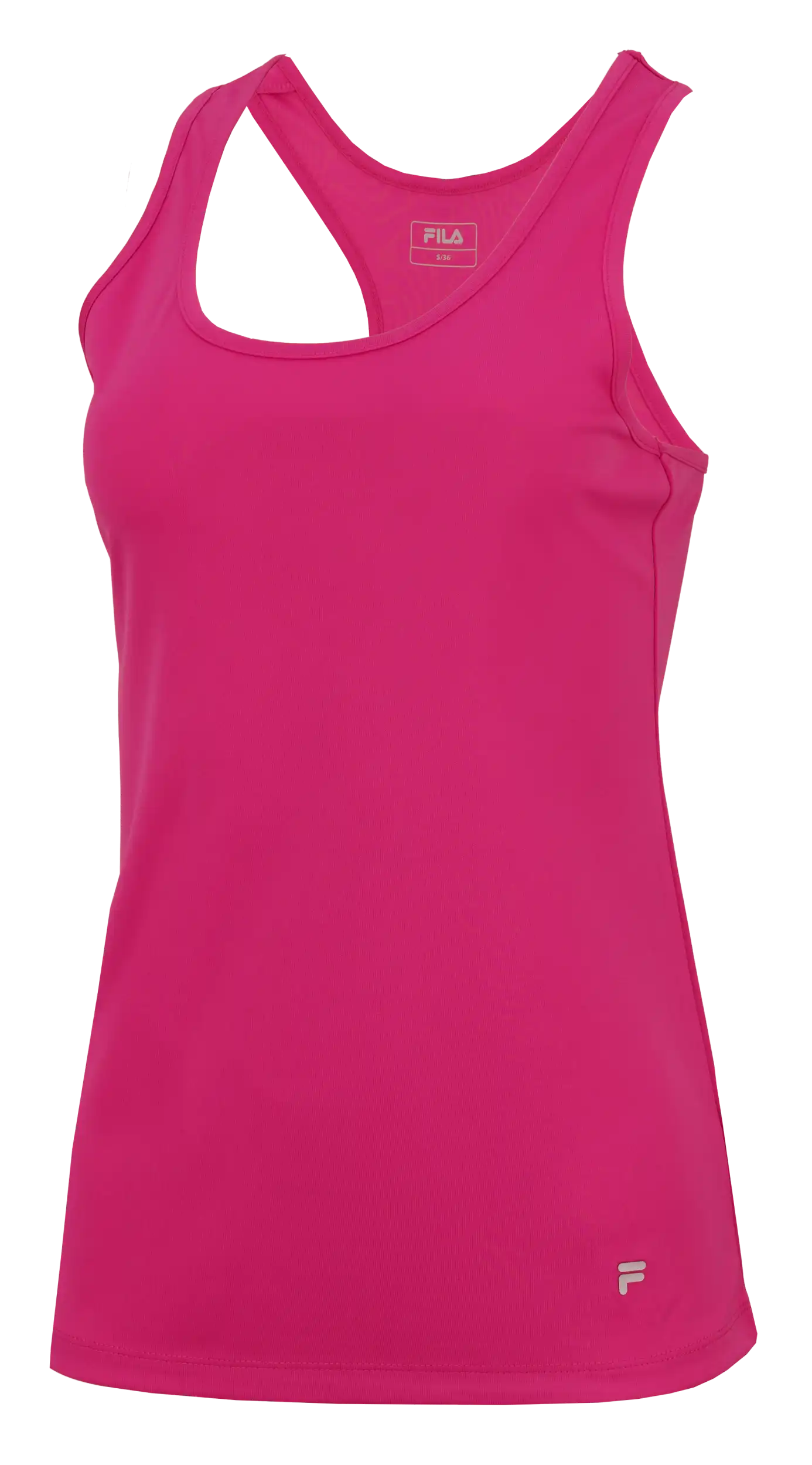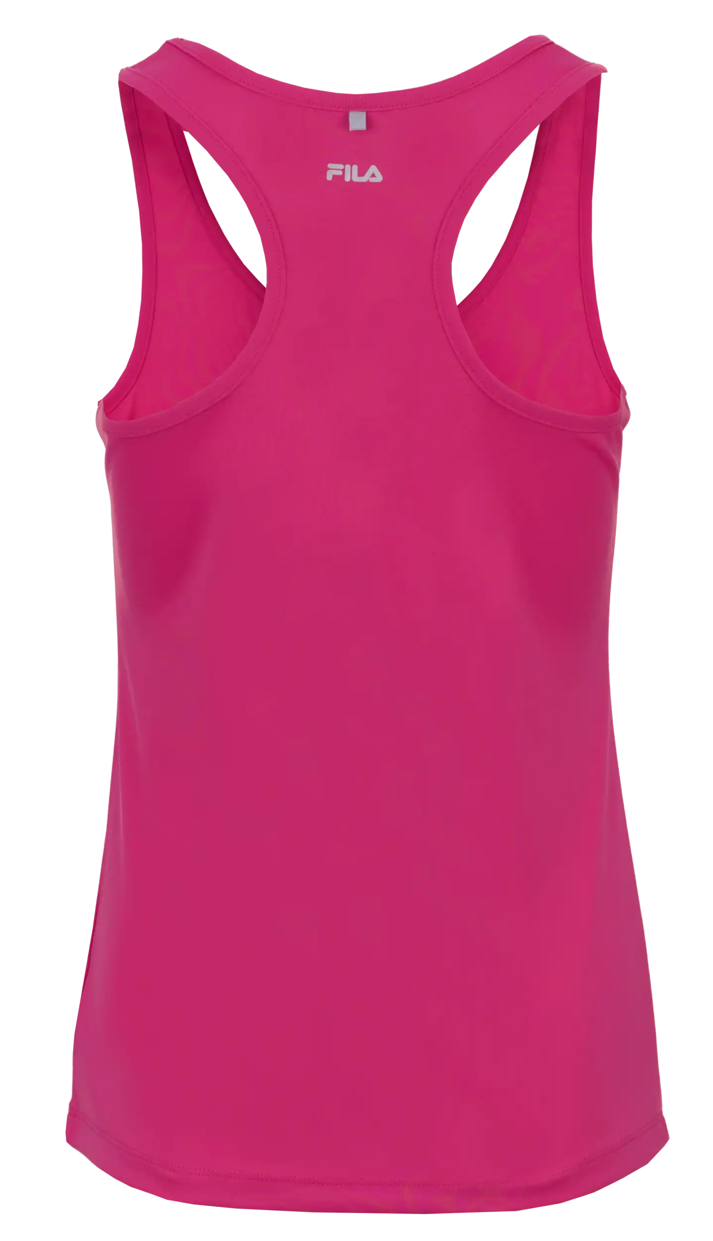 Top Mila – mit Racerback und figurbetont. Das weiche Polyestermaterial lässt sich angenehm auf der Haut tragen. Mit einem passenden Bra aus der Kollektion kreiert sich ein luftiges Outfit. Kleines F-Logo oberhalb des linken Saumabschlusses.