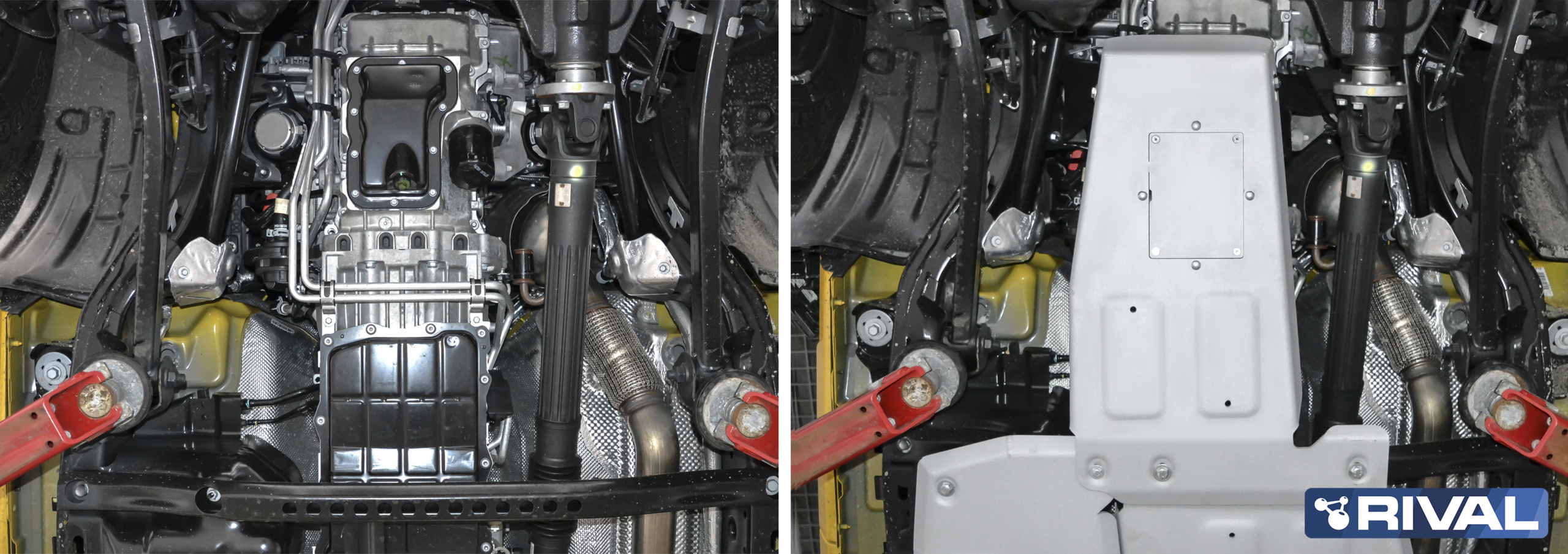 Der Unterfahrschutz verfügt über Vertiefungen, um die Befestigungsschrauben optimal gegen Einwirkungen von außen zu schützen. Besonders hervorheben lässt sich die gute Passgenauigkeit und damit verbundene einfache Montage. RIVAL Unterfahrschutze werden, wenn nicht anders angegeben, an den originalen Befestigungspunkten montiert, lästiges bohren, schneiden oder fräsen entfällt!