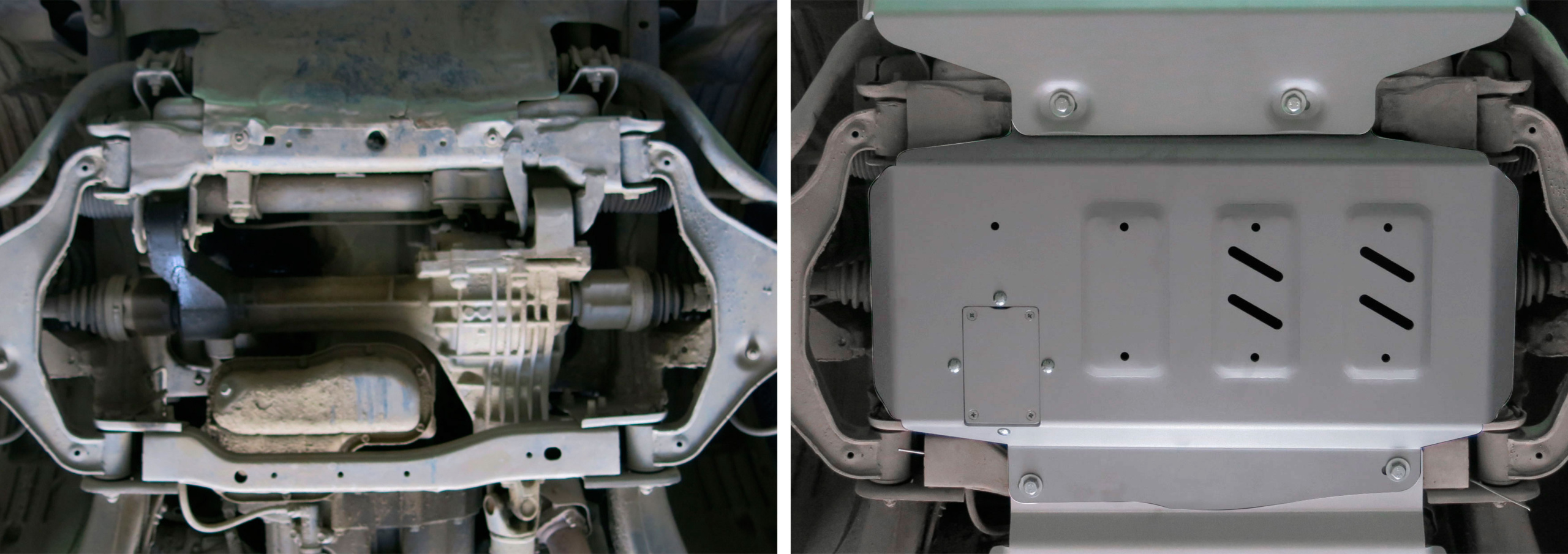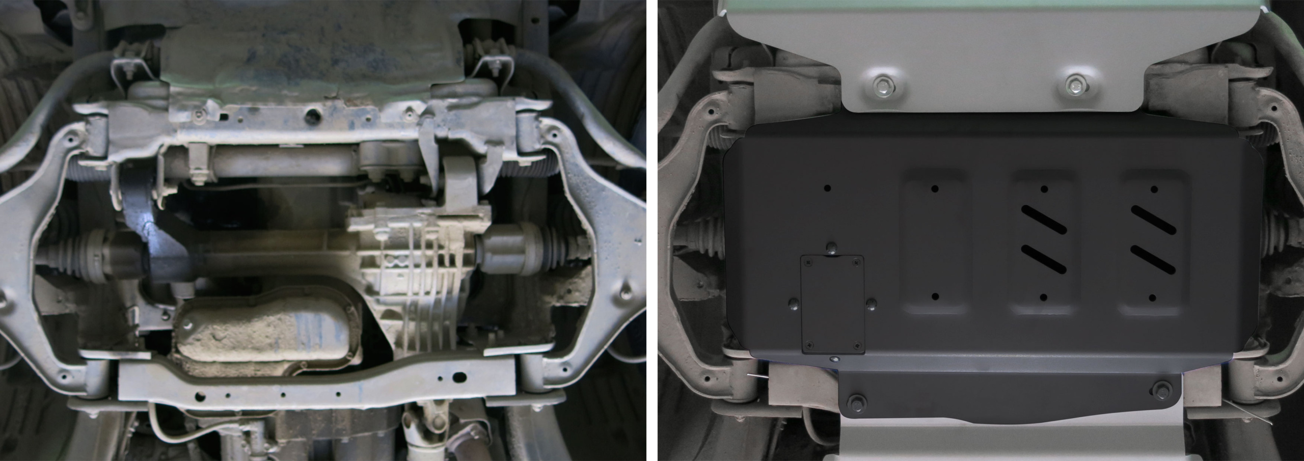 Der Unterfahrschutz verfügt über Vertiefungen, um die Befestigungsschrauben optimal gegen Einwirkungen von außen zu schützen. Besonders hervorheben lässt sich die gute Passgenauigkeit und damit verbundene einfache Montage. RIVAL Unterfahrschutze werden, wenn nicht anders angegeben, an den originalen Befestigungspunkten montiert, lästiges bohren, schneiden oder fräsen entfällt!