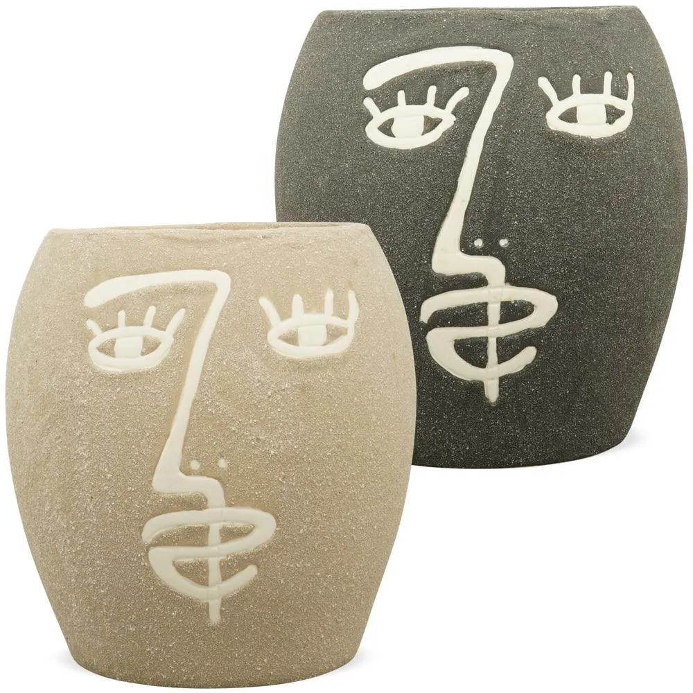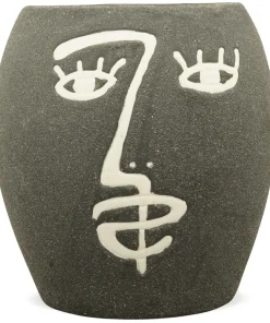 - Diese Vasen haben ein abstraktes Gesicht auf der Vorderseite und machen sie zu einem tollen Dekoelement im Regal