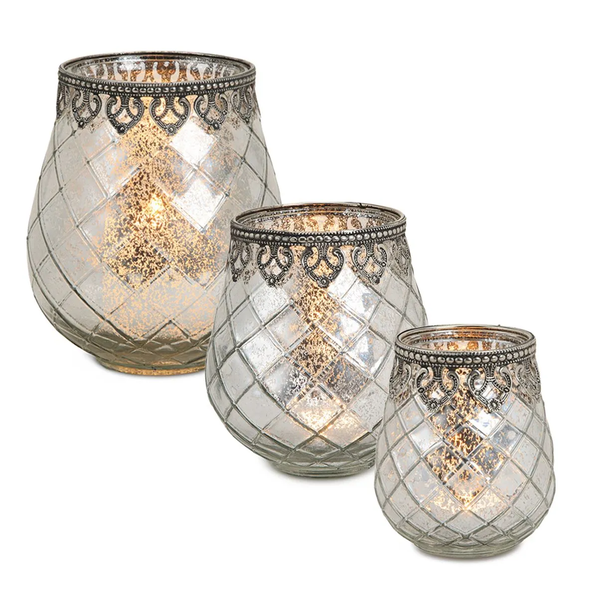 Vintage Windlicht Kerzenglas silber in 3 Größen