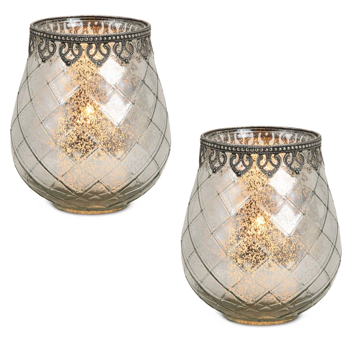 • Orientalisch anmutende Teelichtgläser / Windlichter aus Glas mit Metallrand für wunderschöne Lichteffekte