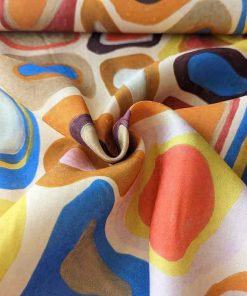 Viskosestoff – Abstrakter Druck in Royalblau und Orange aus Ecru