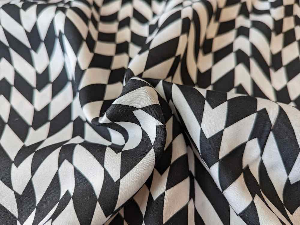 Dieser Viskosestoff mit kleiner Musterung bedruckt ist leicht fallend und hat eine tolle Haptik. Diese Qualität ist pflegeleicht, knitterarm und bietet einen hohen Tragekomfort. Der Stoff eignet sie sich toll für leichte Sommerhosen, Tunikas, Hemden, Kleider, Röcke und vieles mehr. Abbildung Schnittmuster Bluse Kirsten in gleicher Qualität aber anderer Musterung! Dieser Stoff ist nur noch begrenzt am Lager und in 0,5 Meter Einheiten zu kaufen. Natürlich werden alle gekauften Einheiten am Stück geliefert.