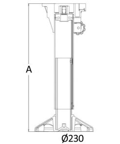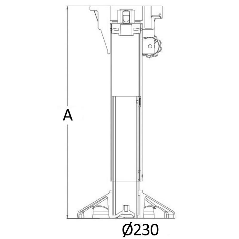 Höhenverstelllung mit Gasfeder. Mit integriertem Stoßdämpfer (Shock Absorber), der durch Wellen verursachte Stöße vermeidet. Sockel aus Eloxal mit Epoxidharzbeschichtung. Rohre aus Eloxal. Kopf aus Nylon/Glasfaser mit Universalloch.
