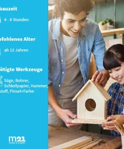 - Benötigtes Werkzeug: Säge, Bohrer, Schleifpapier, Hammer, Klebstoff, Pinsel+Farbe
