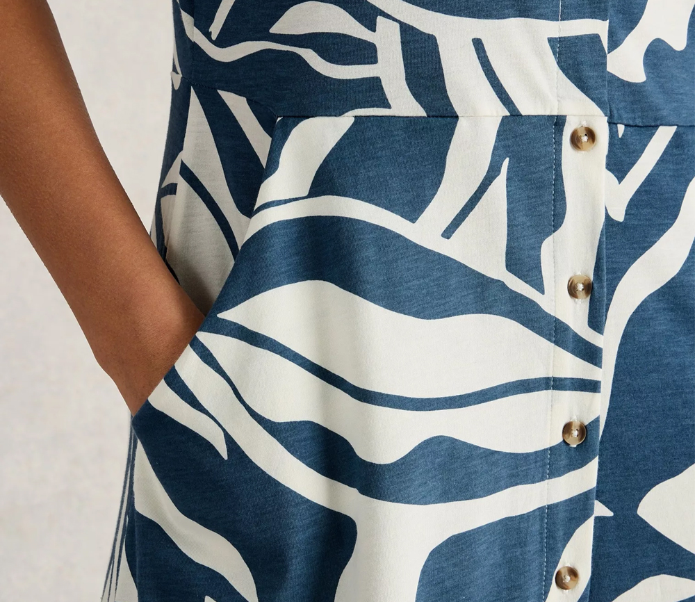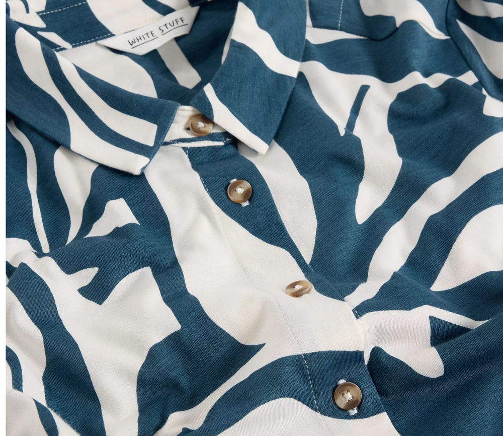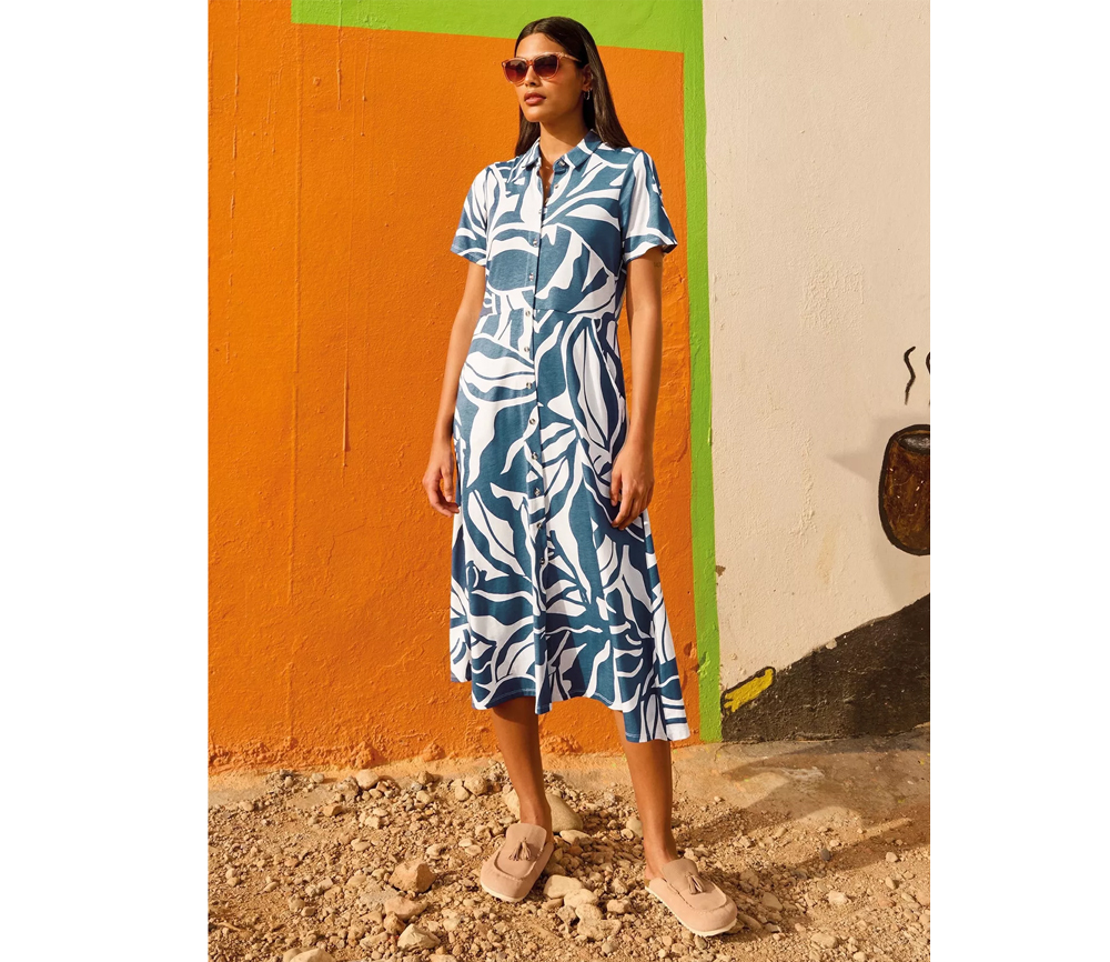 Weicher Jersey mit Bio-Baumwolle, Taschen und eine schicke Knopfleiste. Du wirst dich Hals über K(n)opf in dieses schön gemusterte Hemdblusenkleid verlieben.