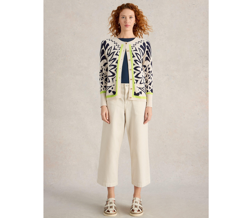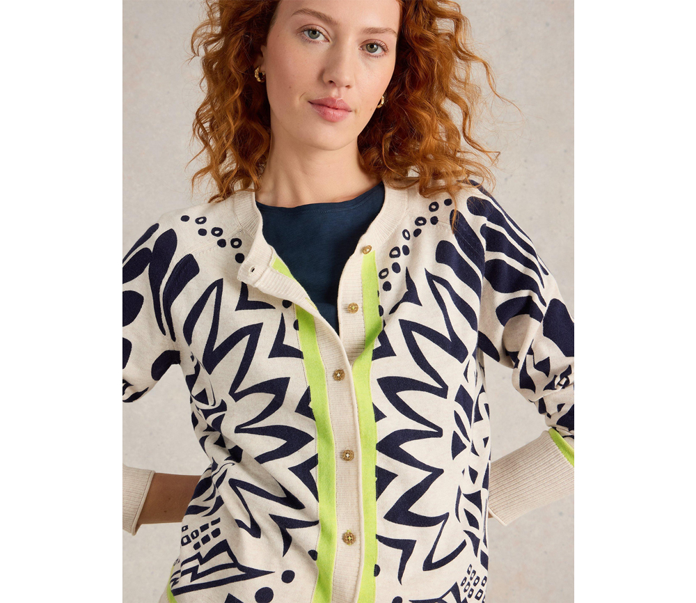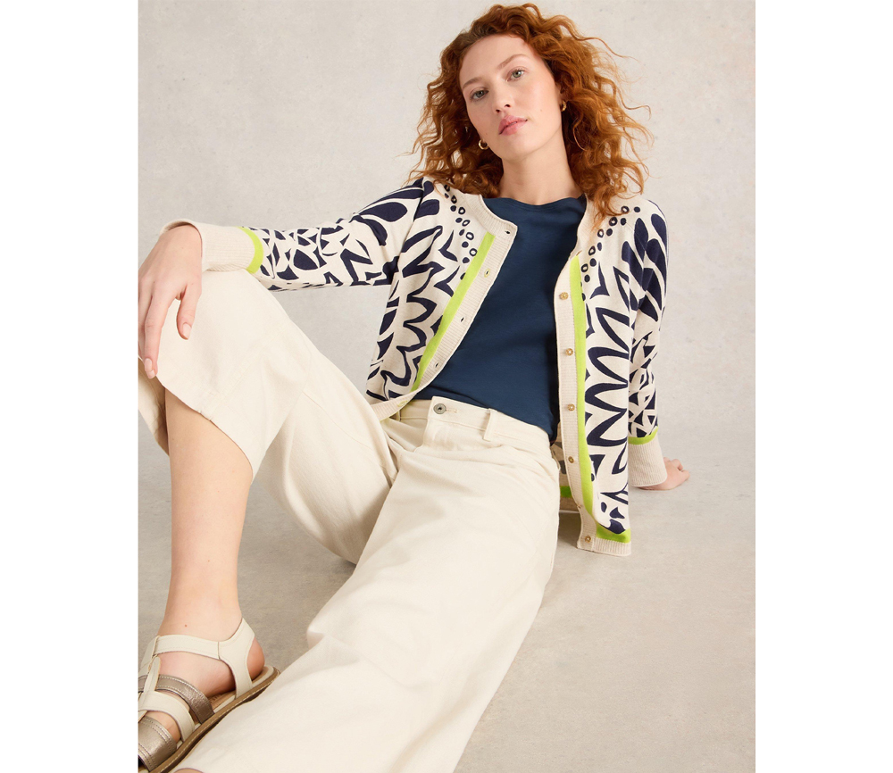 Diese Strickjacke aus Bio-Baumwolle ist leicht genug, um sie immer dabei zu haben, und warm genug, um an kühleren Abenden zu wärmen. Dafür lieben wir sie.