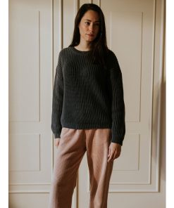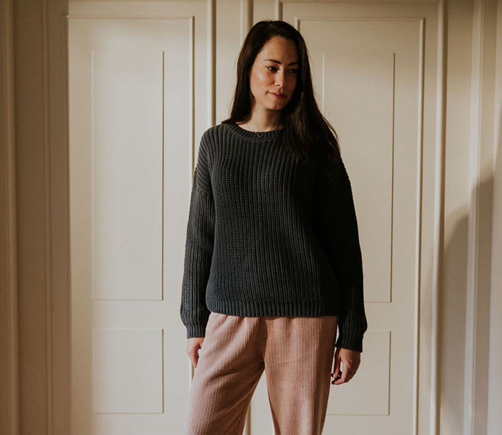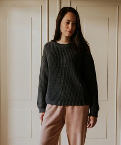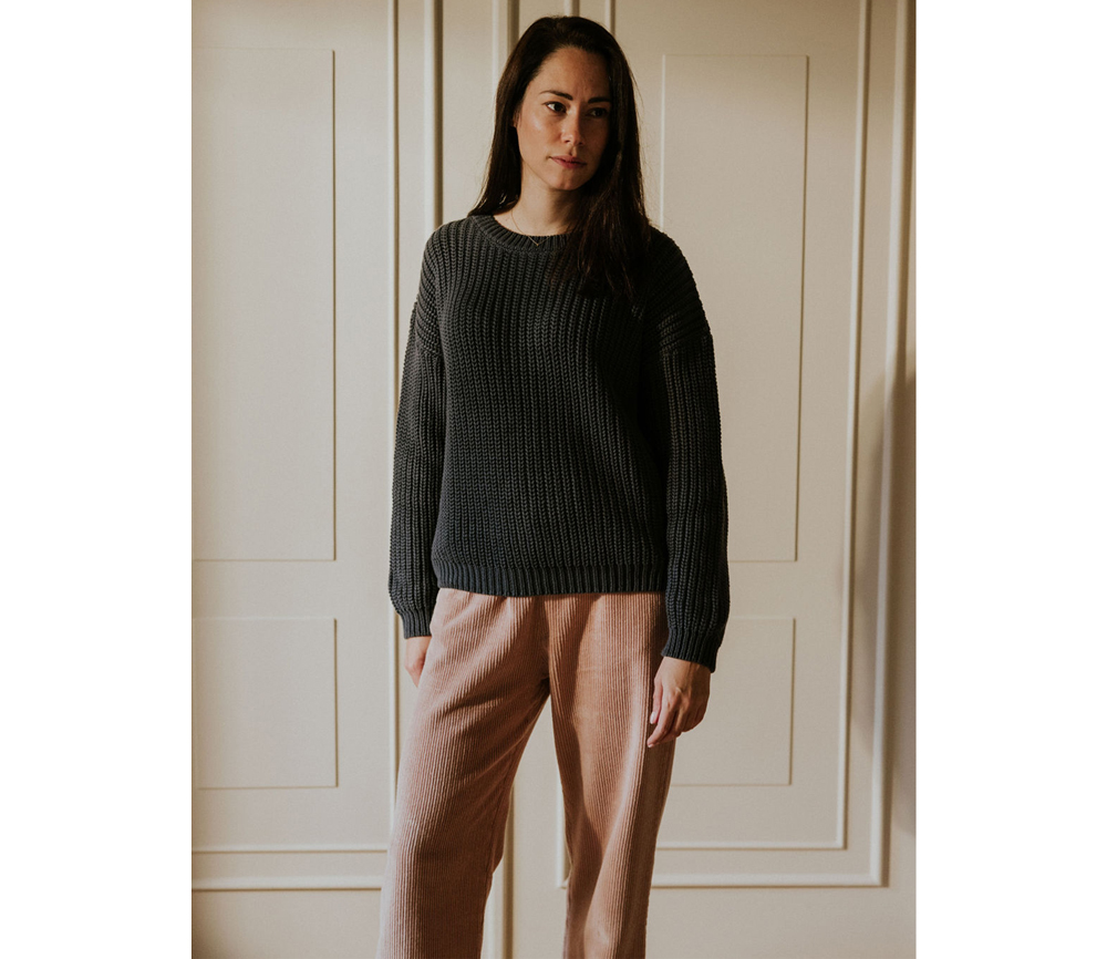 YUKI – Chunky Knitted WOMEN’S Sweater, CHARCOAL, Bio Baumwolle