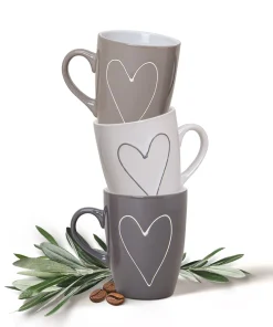 Tassen Becher Herzen Herzdekor grau beige weiß 36 Stk. Keramik 250 ml