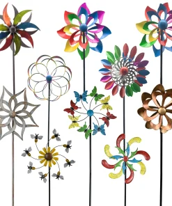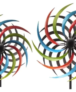 Windräder Gartendeko Metall Stab geschraubt bunt gegenläufig 1 Stk – 2 Größen