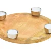 • Schöner Adventskranz / Kerzenhalter aus Metall für vier Stumpenkerzen oder Teelichter auf einem Holzsockel aus Mangoholz