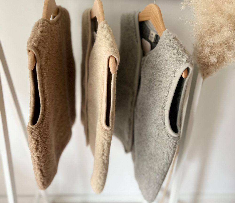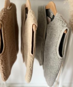 ULTRALEICHTE WOLLE   100 % Wolle in einem Fleece mit Schaffellstruktur und einer sehr leichten Formel. Der Stoff zeichnet sich durch außergewöhnliche Weichheit und Elastizität aus, wodurch er uns sanft umhüllt. Charakteristisch für dieses Material ist seine schwarze Basis, die die Farbe des verwendeten Wollvlieses intensiv zur Geltung bringt.