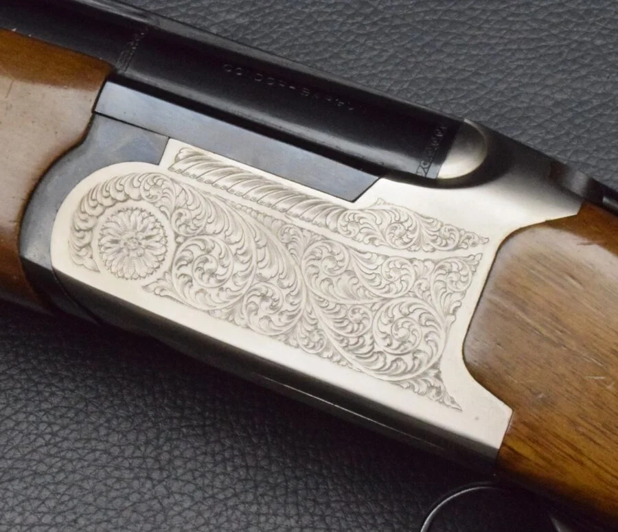 brünierter, passend gravierter Stahlabzugsbügel,