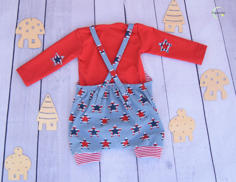 Diesen hübschen Overall, Anzug, Onesie kannst Du aus Baumwolle oder Jersey nähen, alles ist möglich. Der Vorteil bei Jersey ist, dass Du an den Trägern am Ende keine Knöpfe / Druckknöpfe einarbeiten musst, da sich das Material beim Anziehen dehnen kann. Der Anzug ist leicht genäht und auch für Anfänger geeignet. Mit und ohne Body kannst Du den Anzug sehr lange einsetzen, auch aus einem weichen Babycord genäht sieht er hübsch aus. Sehr gut passt hie auch unsere Mütze Michel dazu.