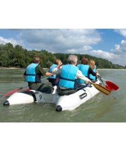 Zerlegbarer Alu Boden, Alu Versteifungen an den inneren Seiten, 2 abnehmbare Sitze, zerlegbare Ruder, Halteleinen, Schleppringe, versenkte Ventile, Scheuerleiste, Fußpumpe und Reparaturset. Auch eine Tragetasche wird kostenlos beigegeben.