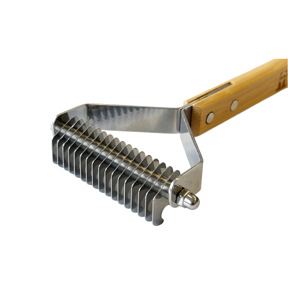 Bamboo Groom Unterwollkamm mit 17 Zähnen aus Edelstahl und Bambus (Unterwolle, Verfilzungen, Knoten)