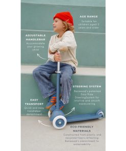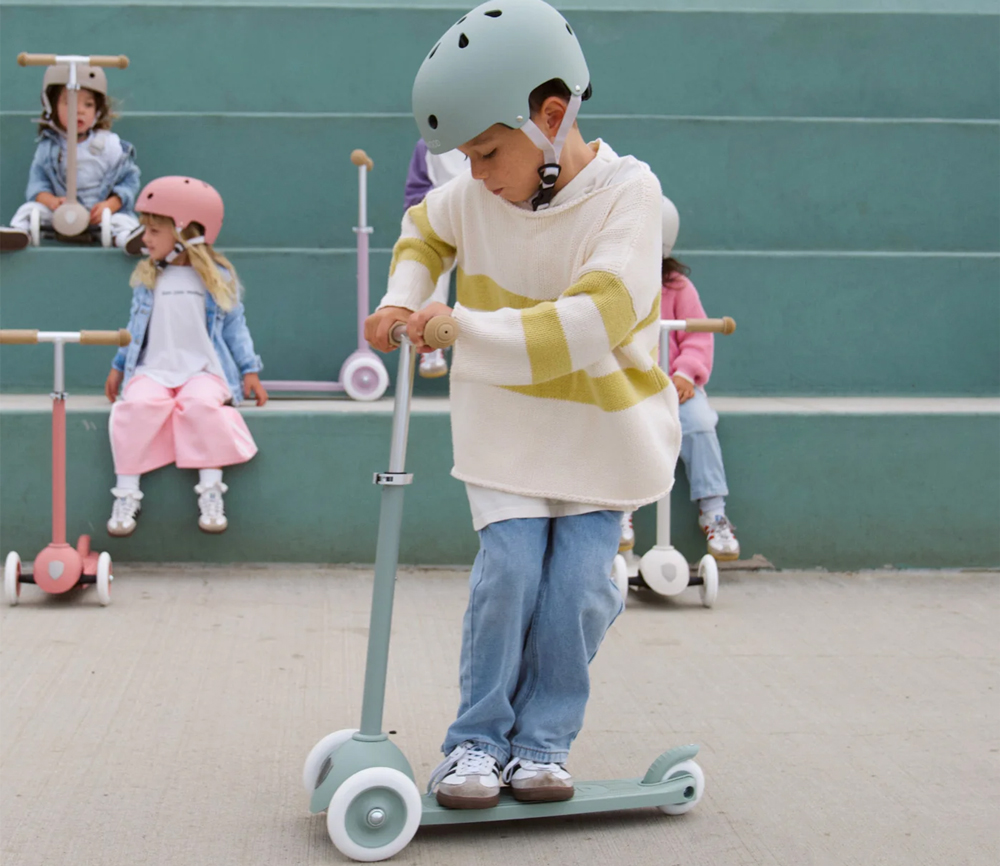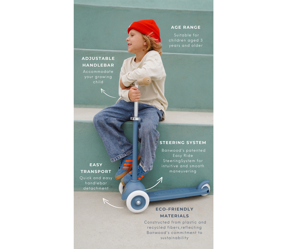 Mit dem hübschen, dreirädrigen Kinder-Scootervon Banwood lässt es sich so richtig durch die Nachbarschaft und über den Spielplatz kurven. Das Trottinett besitzt eine breite Trittfläche,diefür einen stabilen Stand sorgt, eine breite Bremse und eine T-förmige Lenkerstange mit weichen Griffen, welche auf die Grösse deines Kindes eingestellt werden kann. Das von Banwood patentierte „Easy Ride Steering System“sorgt für ein praktisches und sicheres Fahrerlebnis. Ein modernes Winkel-Kontrollsystem reguliert den Drehbereich der Vorderräder, wodurch das Lenken und Fahren zum Kinderspiel wird. Der Scooter im Vintage Look fördert spielerisch die Koordination, das Gleichgewicht und die Feinmotorik deines Kindes.  Dadurch gewinnt jeder kleine Spross an Selbstvertrauen und wird zum unaufhaltsamen Trotti Fahrer.