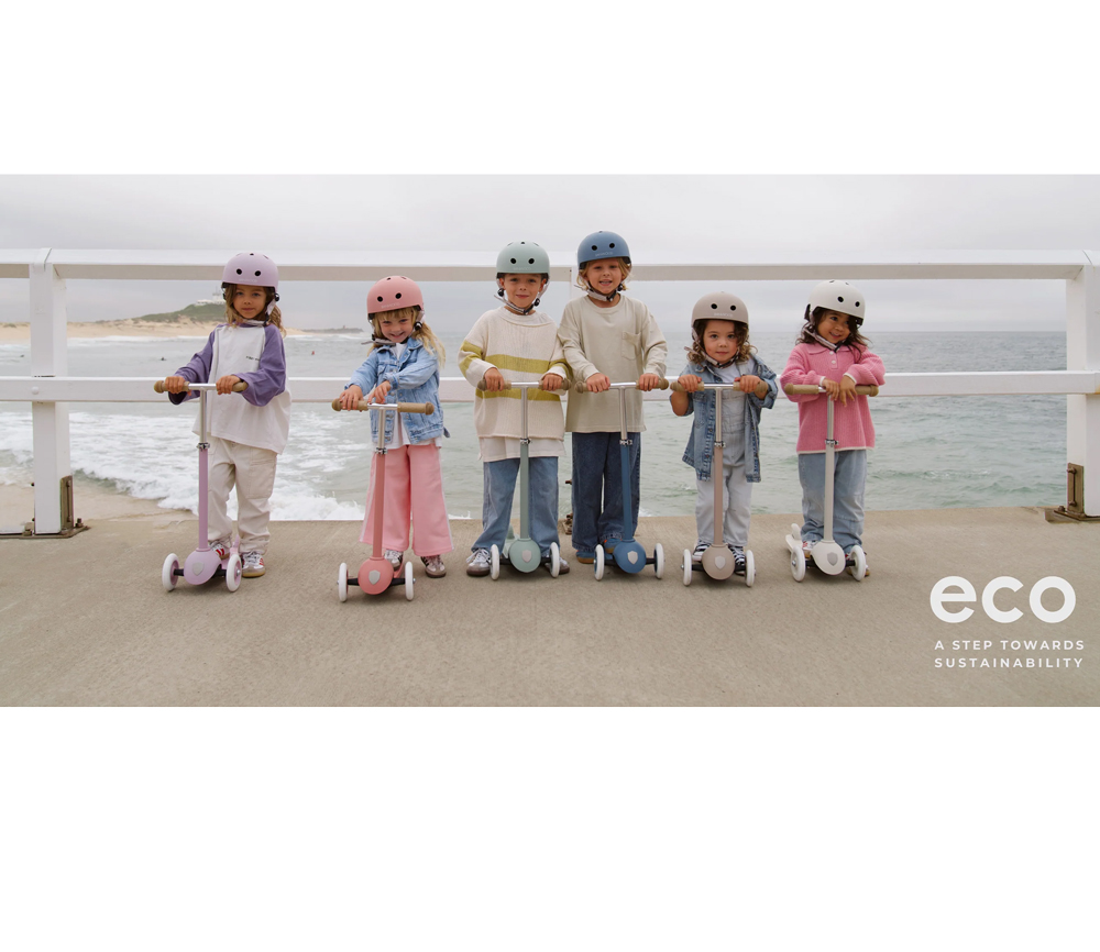 Der Tretroller wurde aus 100 % recyceltem Kunststoff aus Verbraucherabfällen gefertigt. Dieses umweltfreundliche Material wird über zertifizierte Abfallentsorgungspartner bezogen und aus weggeworfenen Gegenständen wie Flaschen, Tüten, Bechern und Fischernetzen wiederverwertet.