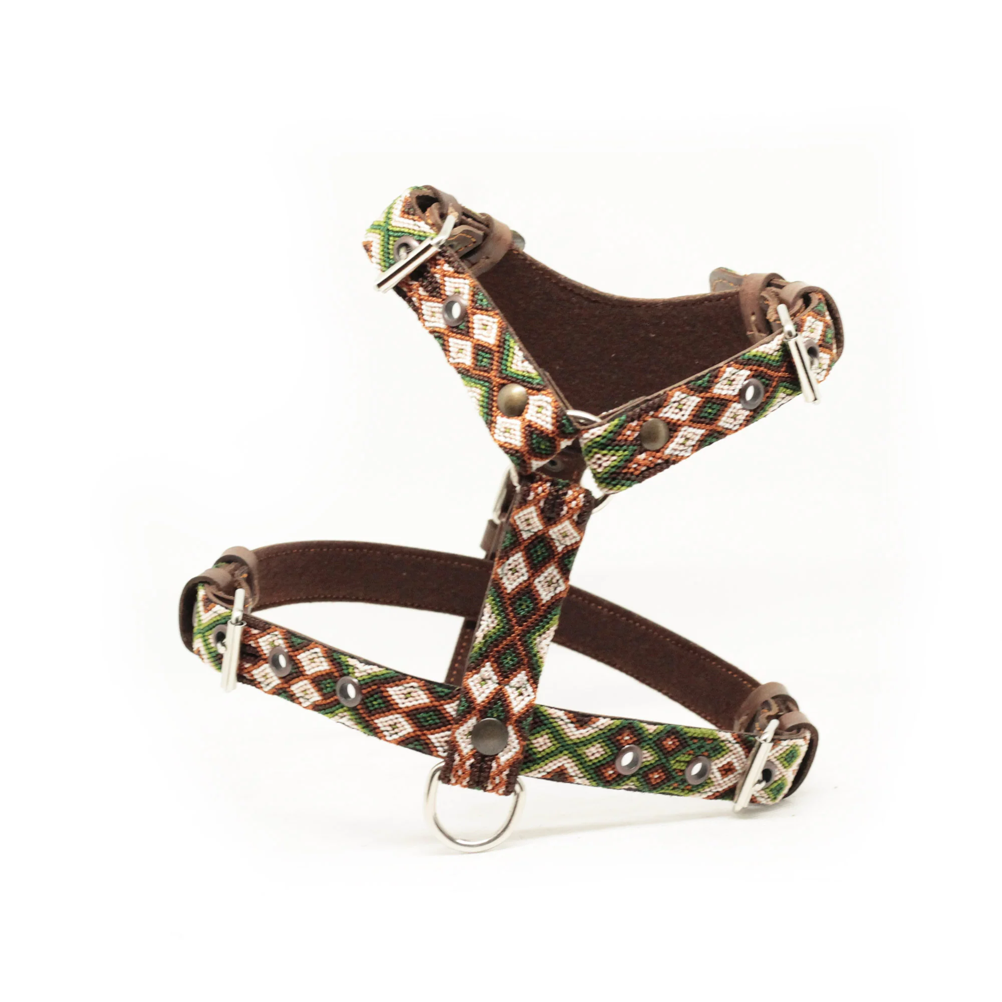 Boho-Leder Geschirr, olive/braun/beige (M)