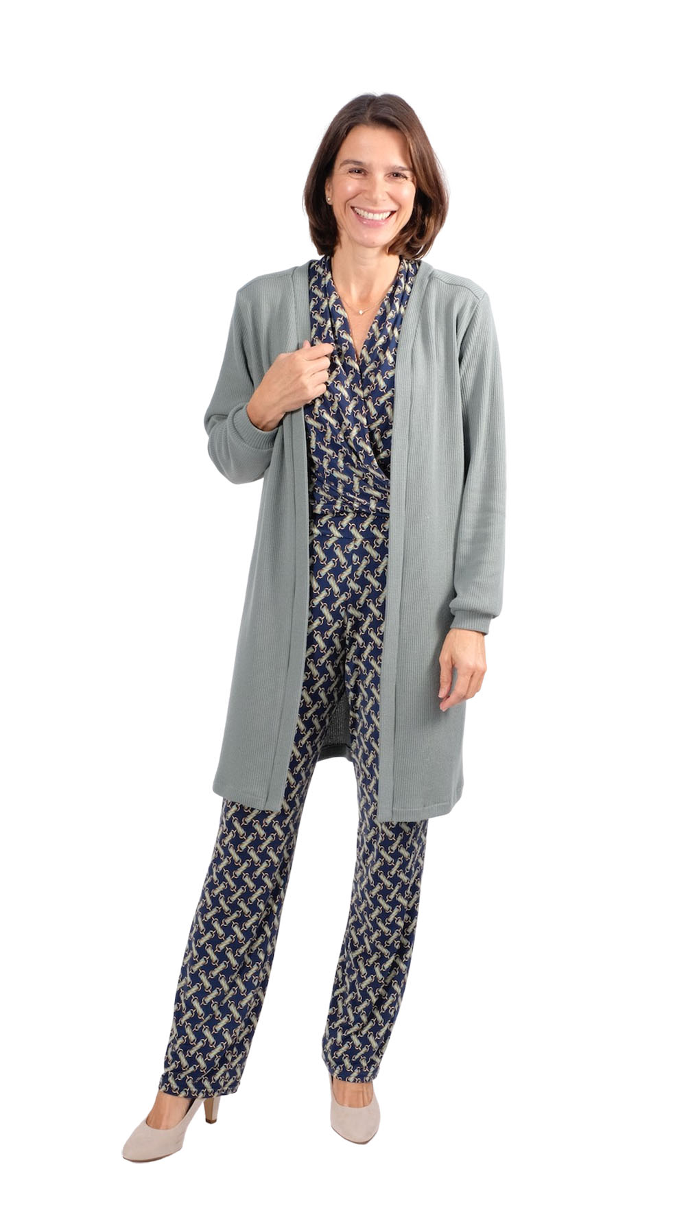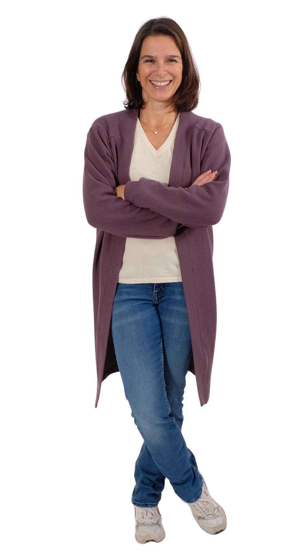 Dies ist eine sehr unkomplizierte Jacke (Cardigan), welche durch den Stoff immer wieder anders daher kommt. Die Jacke wird vorne geknöpft kann aber auch offen getragen werden. Die Jacke ist nicht nur bequem und kuschelig, sondern auch noch überaus praktisch. Die leger geschnittene Jacke ist ein idealer Begleiter für den Frühling und Herbst. Wenn die Jacke einmal genäht ist, wird eine zweite garantiert noch folgen! Ob in kurz oder in lang, sie wird immer wieder gut aussehen! Auch schön zu unsere Hose Alika.