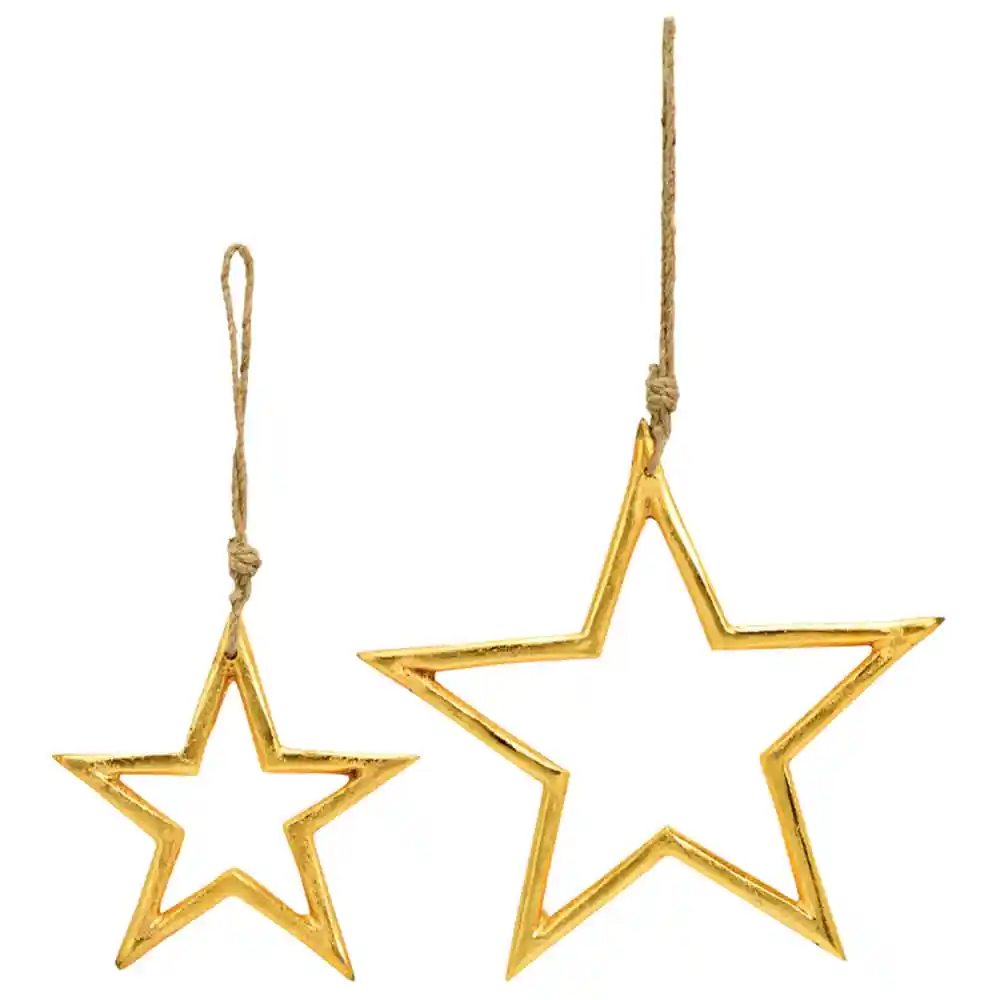 Dekohänger Sterne mit Kordel Weihnachtsschmuck Hängedeko gold Metall 2 Größen
