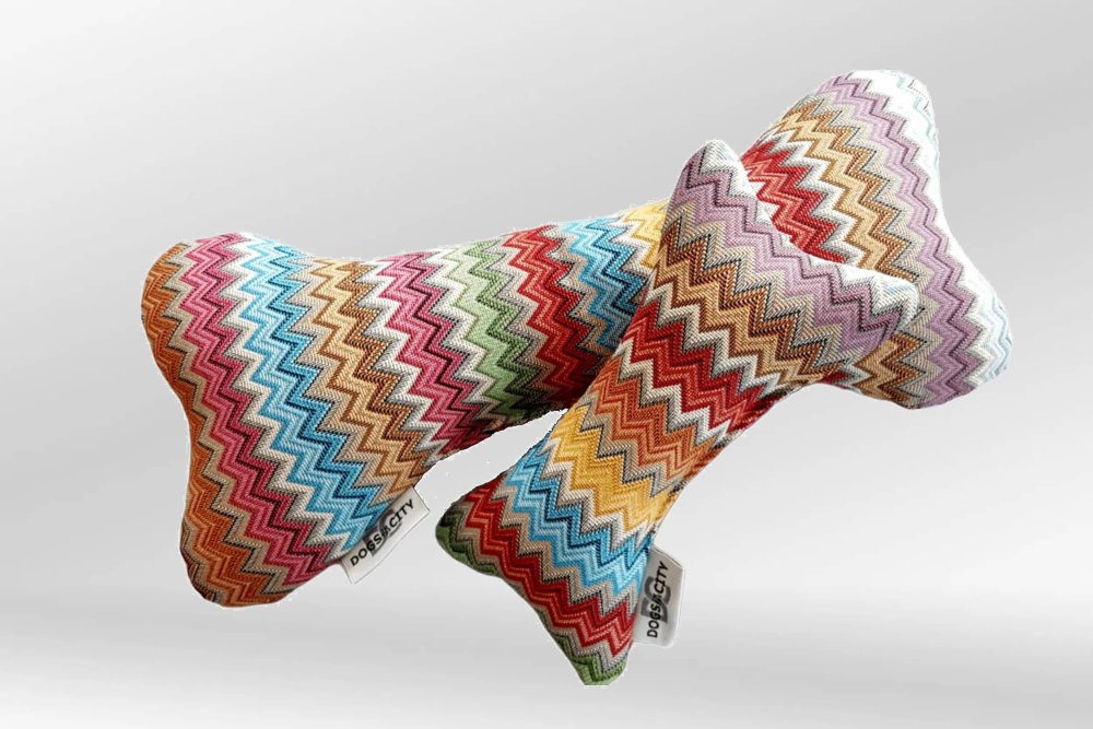 DOGS in the CITY, Plüschknochen ZicZac, ohne Quietscher, 60% Baumwolle, nachhaltig durch Stoffreste, waschbar (S 20 cm)