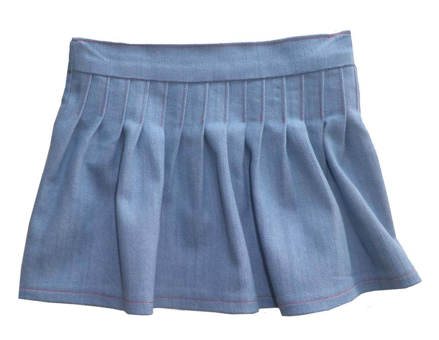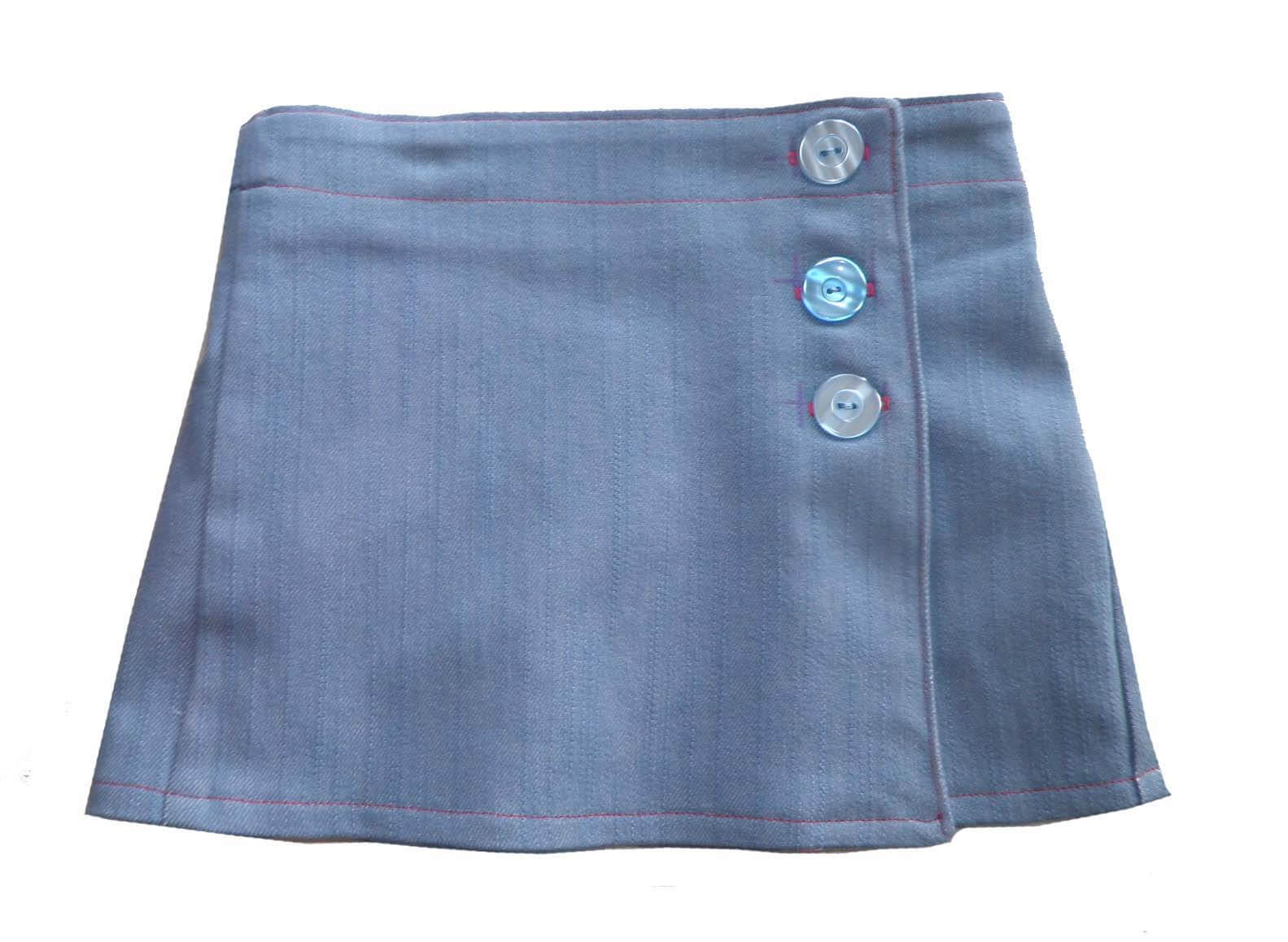 Dieser Rock kann aus Denim oder aus leichter Baumwolle genäht werden. Wer keine Falten möchte, der kräuselt den Stoff einfach ein. Mit oder ohne Strumpfhose bzw. Legging ist dieser Rock das ganze Jahr über tragbar. Das Modell ist vom Prinzip her einfach genäht und auch für Anfänger geeignet. Nur die Knöpfe auf dem Rockvorderteil könnten für blutige Anfänger etwas kniffelig sein. Vom Prinzip her kannst Du diese aber auch durch Druckknöpfe ersetzen. Dies sieht unserer Meinung nach aber nur bis Gr. 104 gut aus. Ab Gr. 116 empfehlen wir “normale Knöpfe”. Das ist aber auch immer eine Geschmacksfrage.