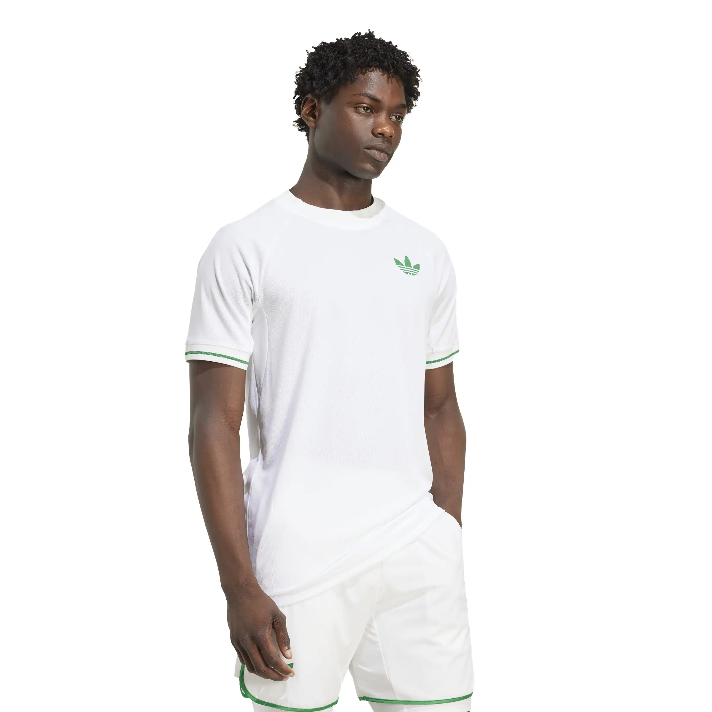 Hol dir den angesagten Tennis-Style für dein Spiel. Dieses T-Shirt ist für das wichtigste Rasenplatz-Turnier der Welt designt und kombiniert authentischen adidas Vibe mit moderner Performance. Für Premium-Komfort ist es mit CLIMACOOL+ ausgestattet, unserer besten Kühlinnovation. Die schmale Passform ist schön aerodynamisch, während die FreeLift Passform volle Bewegungsfreiheit ohne Verrutschen ermöglicht. CLIMACOOL+ Materialien ermöglichen ein schnelles und effizientes Feuchtigkeitsmanagement. Dank schnell trocknender Fasern fühlst du dich angenehm frisch. Gezielter Support ? für eine systematische Kühlung wurden per Bodymapping die größten Schweißzonen ermittelt. Das Zusammenspiel aus Performance-Tech und fortschrittlichen Materialien sorgt für kühlen, trockenen Komfort, damit du ungehindert abliefern kannst.