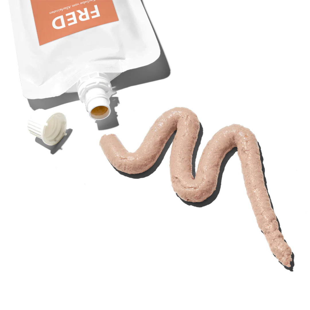 Gönn deinem Hund etwas Besonderes mit der FRED Lieblingscreme Lachs! Diese cremige Lachspaste aus hochwertigem Lachs liefert wertvolle Omega-3-Fettsäuren für glänzendes Fell und Gesundheit. Ob als Snack, Futter-Topping oder Belohnung – diese Leckerei wird deinen Vierbeiner begeistern!