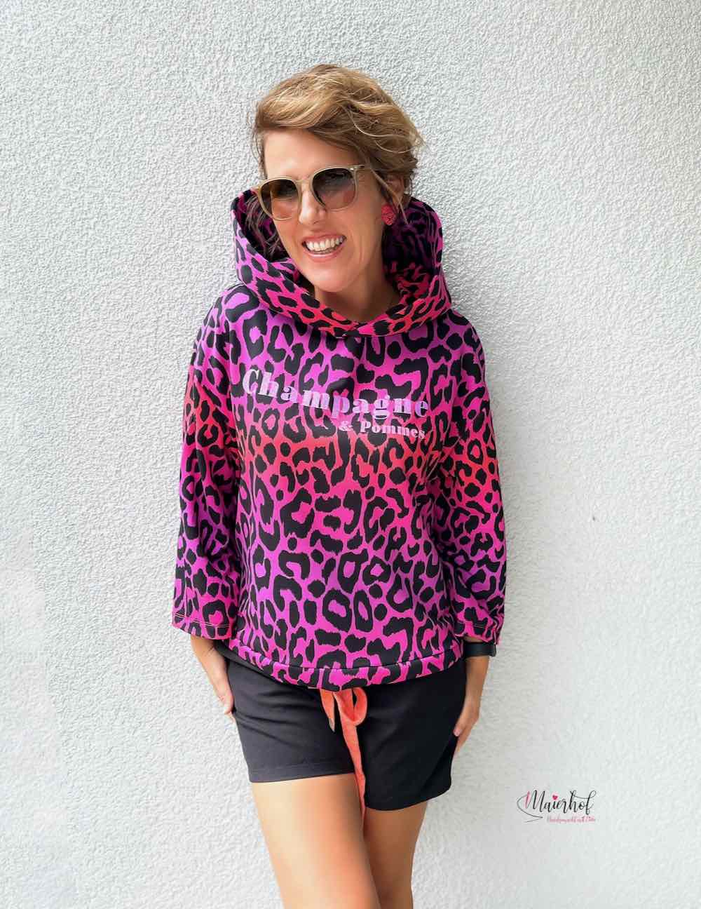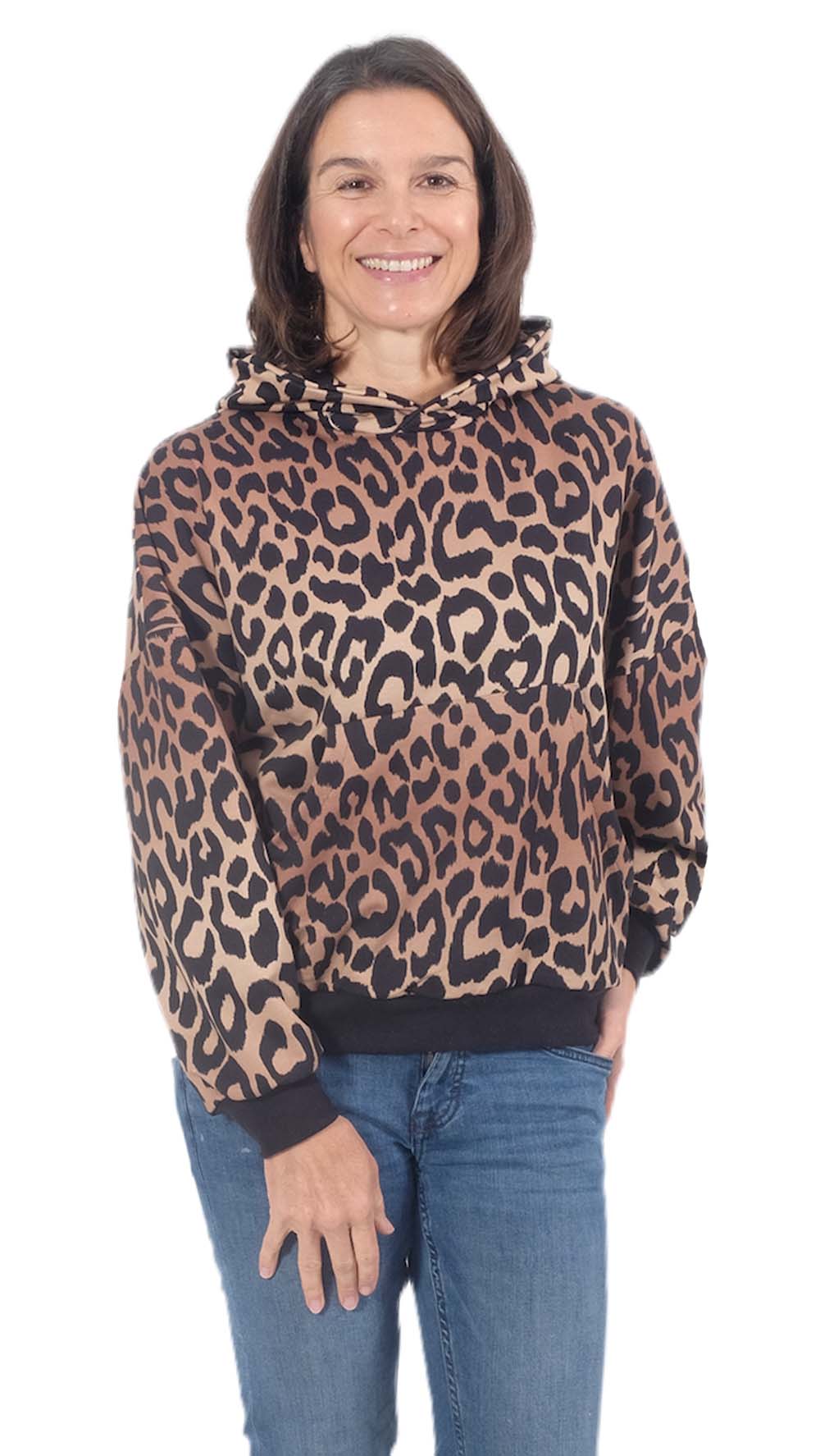 Ein sehr hochwertiger Sommersweat mit einem tollen Leo Druck. Das Material ist ideal für Röcke, Shirts, Kleider und Oberteile. Abbildung Kleid Lenka in Original und Shirt Milda in anderer Musterung aber gleicher Qualität.