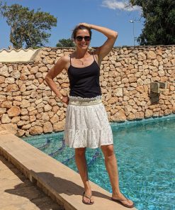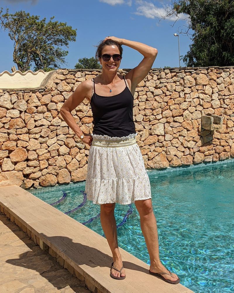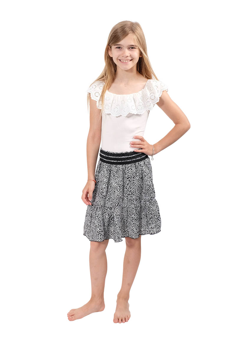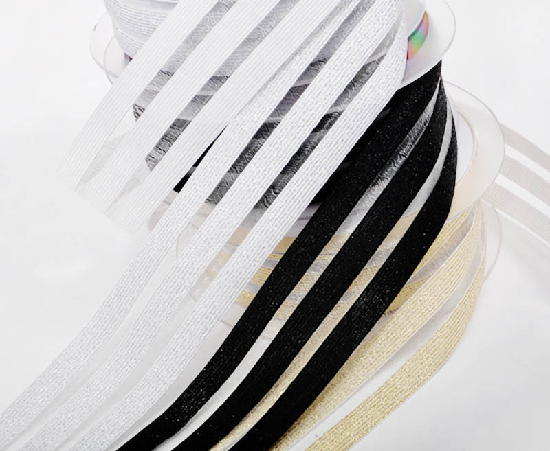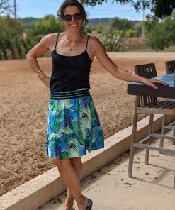Gummiband mit 3 Streifen, verschiedene Farben – 5 cm breit. Preis pro 3 Meter – Längenangabe erfolgt über das Feld Menge. Bei zwei gekauften Einheiten werden 2 x 3 Meter geliefert, bei 3 Einheiten 3 x 3 Meter u.s.w. Abbildung Stufenrock Edina und Bluse Diana.