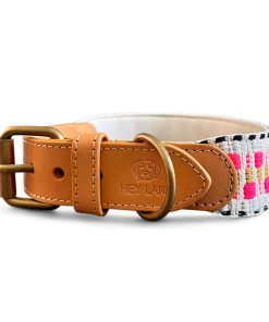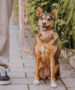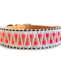 Hey Lana Premium Hundehalsband gepolstert, Rindsleder, gewebte Biobaumwolle, Neopren „Trés chic pink/beige, XS, S, M, L