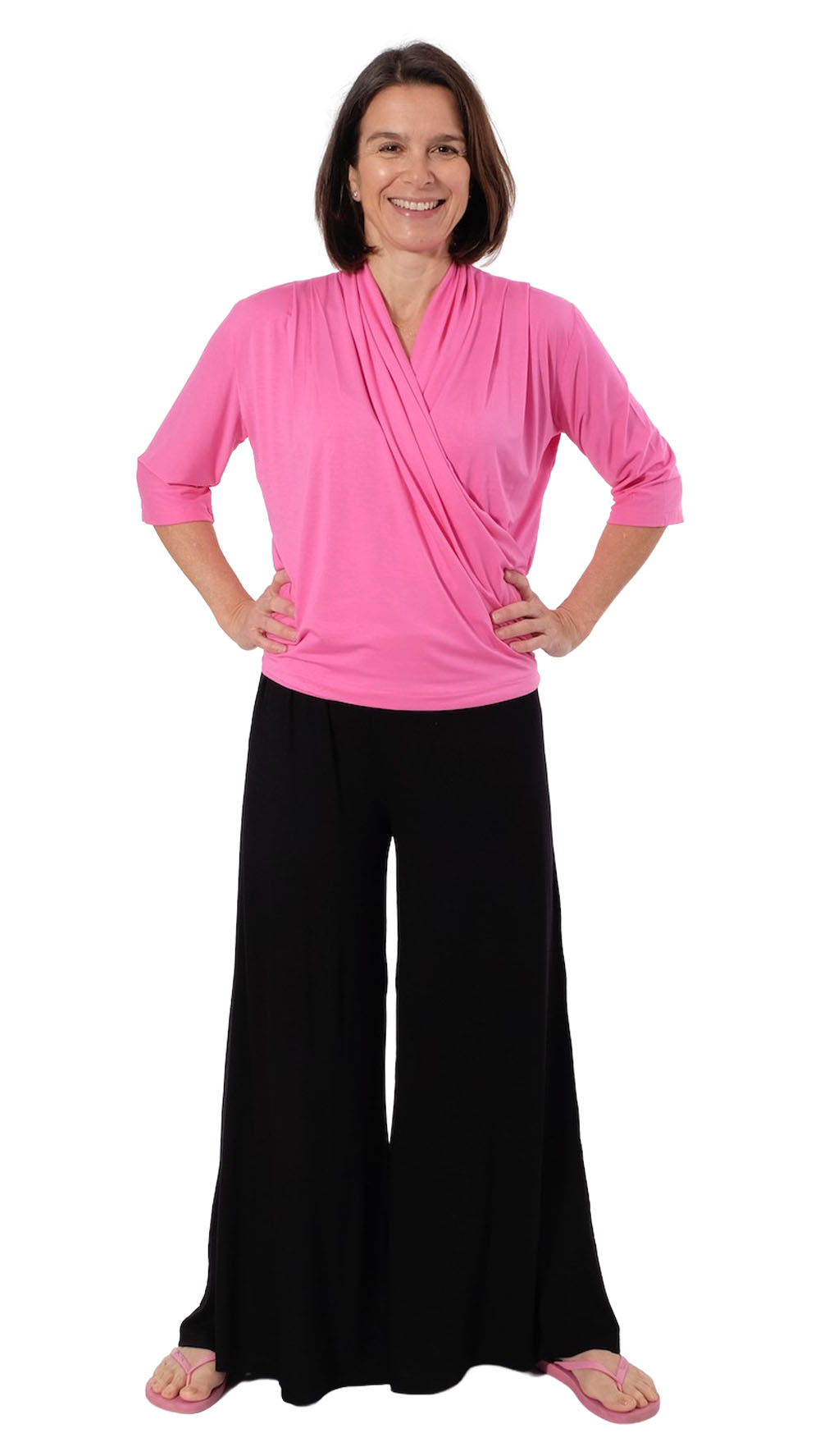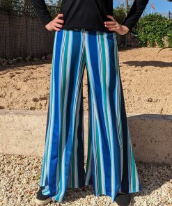 Die Slinky Ware ist durch den hohen Elasthan Anteil extrem dehnbar. Man kann ihn auch mit einem festeren Viskosejersey vergleichen. Den Stoff kann man ideal für enge Sportbekleidung aber ebenso für weitere Hosen, Wasserfallshirts, weich fallende Kleider und Röcke verwenden. Der Artikel ist bi-elastisch. Abbildung Hose Anya mit Shirt Adina in blauer Farbstellung. Abbildung Shirt Nike, Hose Willi und Legging Wiebke in anderer Musterung aber gleicher Qualität zur besseren Darstellung. Auch für unseren Jumpsuit Hazel oder die Palazzo Hose Anya bzw. Isabell ist die Ware sehr gut geeignet. Das Kleid Aida und Mariola haben wir auch schon daraus vernäht.